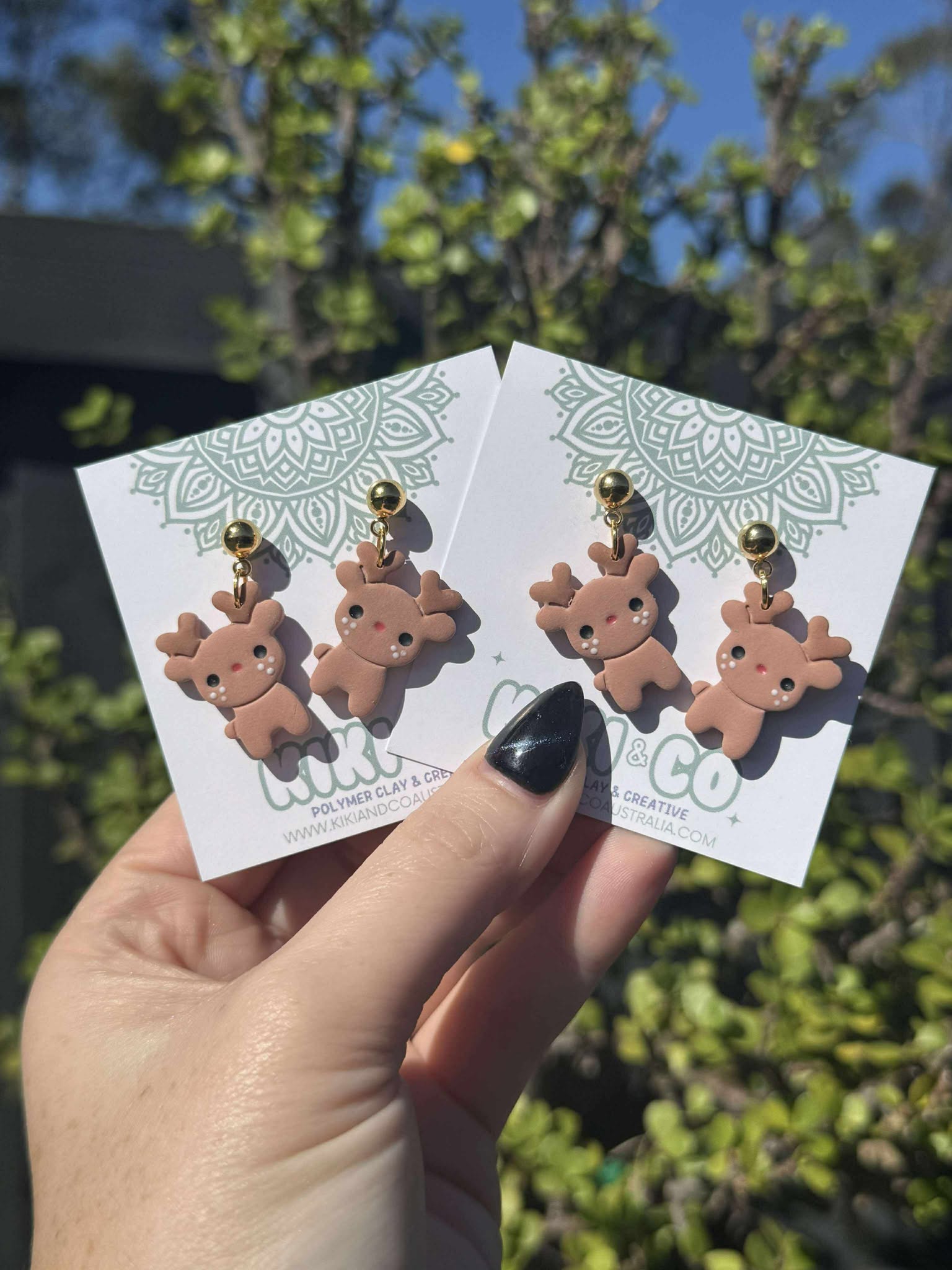 Add a touch of Christmas magic to your outfit with these adorable polymer clay reindeer earrings — because who says Rudolph should have all the fun?